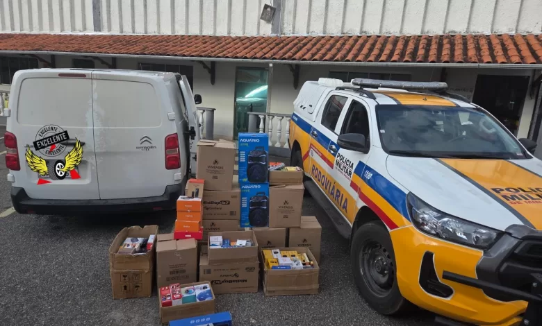 A Polícia Militar Rodoviária (PMRv) apreendeu uma carga de produtos eletrônicos sem comprovação de origem durante uma operação de fiscalização na altura do km 214, da BR-265, em Barbacena.