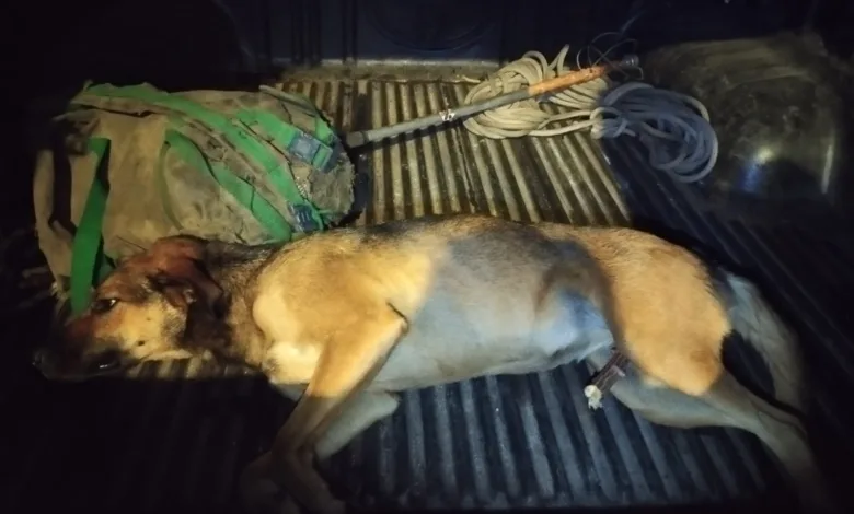 Bombeiros resgatam cadela ferida no distrito de Correia de Almeida