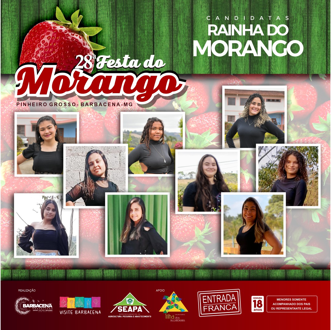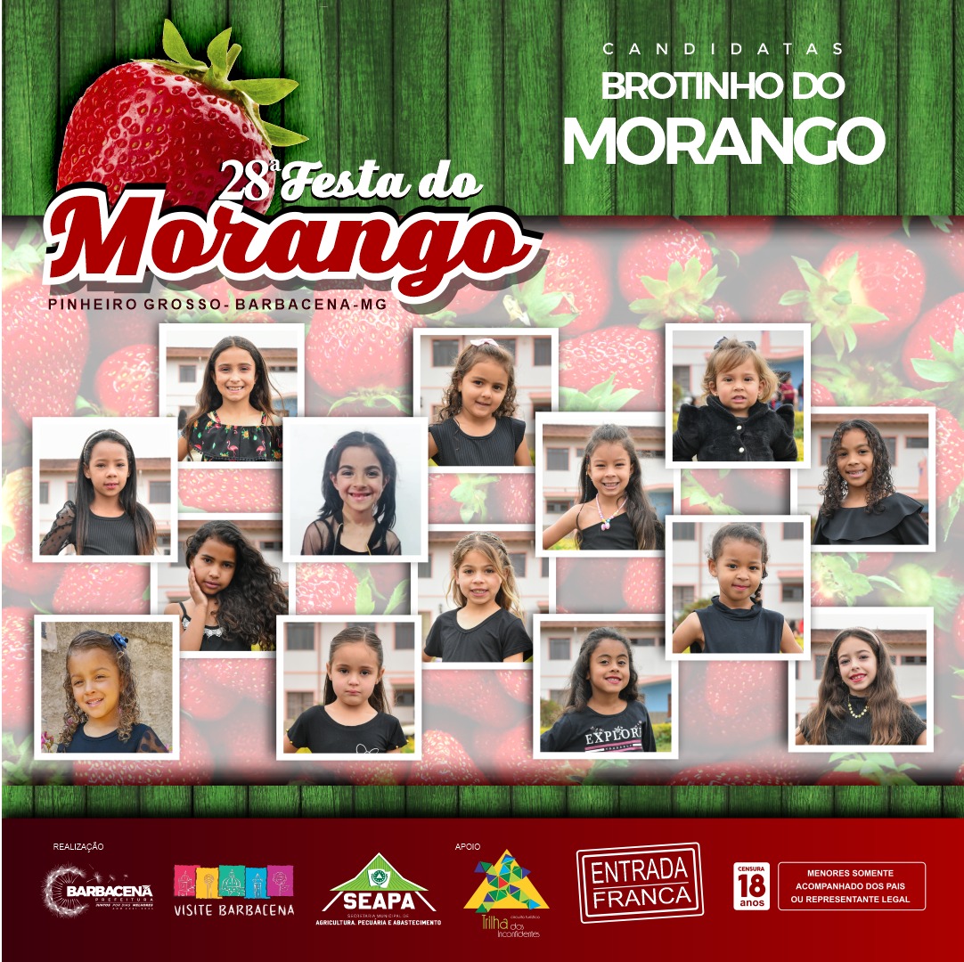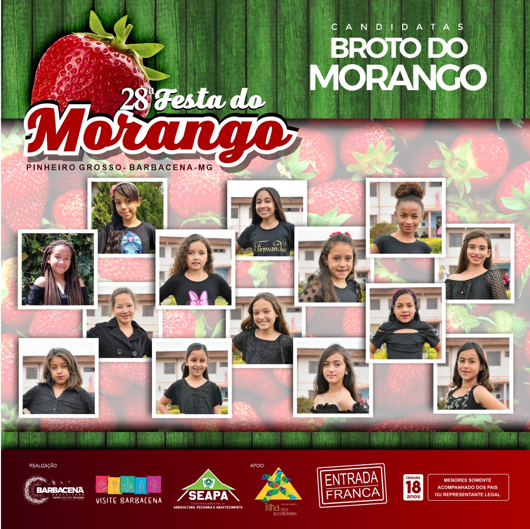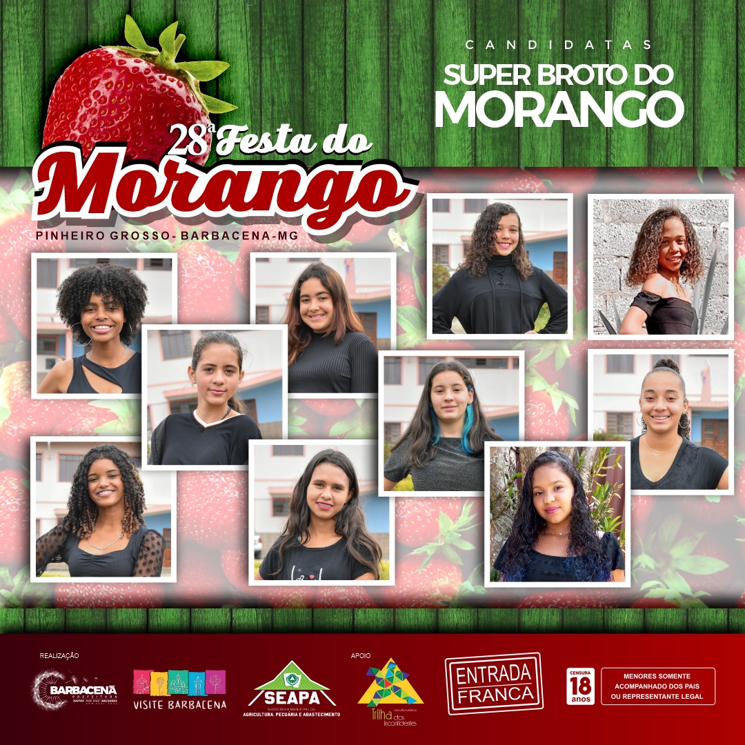 Nesta semana, acontece a 28ª Festa do Morango de Pinheiro Grosso, marcando o resgate de mais uma tradicional festividade dos distritos de Barbacena. O evento contará com o concurso que elegerá as próximas Broto, Brotinho, Super Broto e Rainha do Morango de 2022.