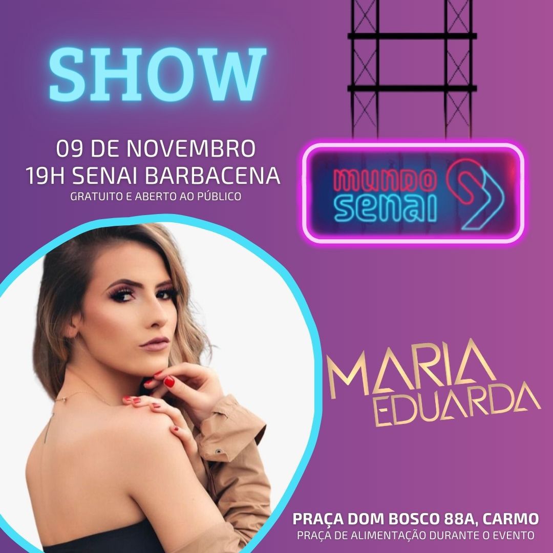 - Show com a cantora Maria Eduarda a partir das 19 horas.