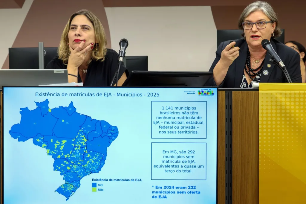 De acordo com Sanches, municípios como Indaiabira e Fruta de Leite atingem, respectivamente, 25,8% e 27,2% de taxas de analfabetismo. Os territórios mais críticos se concentram sobretudo no Norte de MinasVale do Jequitinhonha e Vale do Mucuri. No caso de indígenas quilombolas, as taxas variam entre 14% e 16%.  Nos anos de 2024 e 2025, a queda de matrículas da EJA foi de quase 20%.